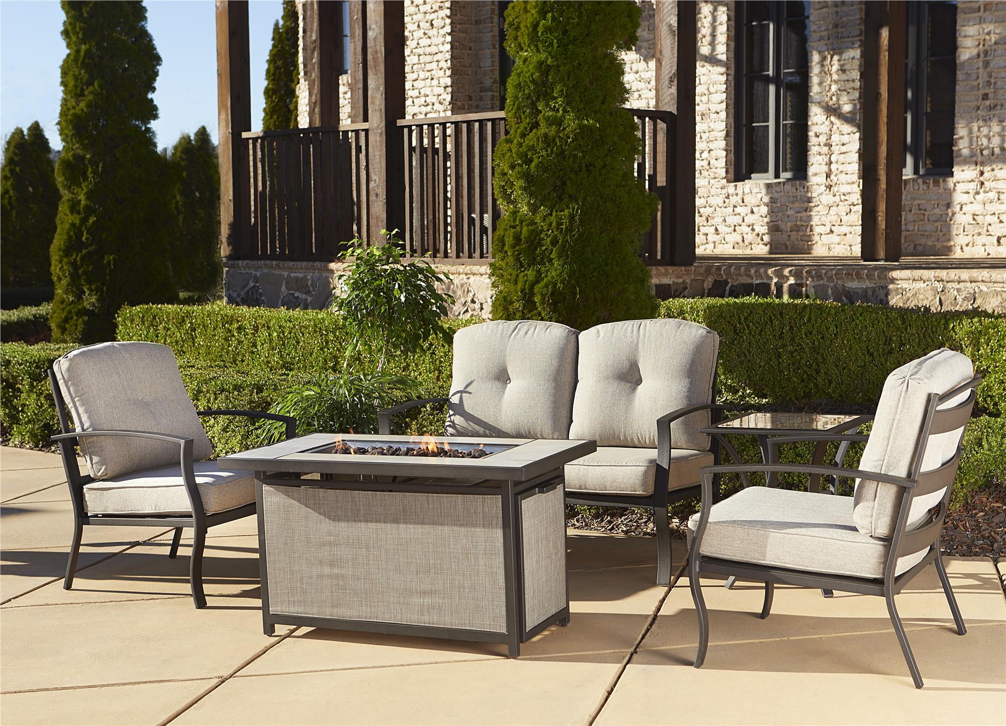 They include everything from sectional sofas to chaise lounges. Rated 5 out of 5 stars. Ratings, based on 20 reviews. Patio spaces are being used more into the cooler months, having a choice of fire pit conversation sets for your patio will allow you to join this march. The fire pit conversation set warms you up in comfort. A conversation set is different than a patio dining set. From outdoor dining furniture, outdoor deep seating furniture, outdoor bar furniture and even fire pit furniture, we have plenty of options to match the backyard. Patio conversation sets by ashley homestore. Enjoy the beautiful weather with a comfortable patio conversation set from the great selection at coleman furniture. Yes, we carry a khaki product in fire pit patio sets. Create a spark with one of our fire pit conversation sets for the backyard or patio. Each product's frame is made with durable materials and treated to withstand tough weather conditions. The seating for four and a fire pit for warmth will get you outside until the snow falls or latter into the winter months if you are the more outdoorsy type.